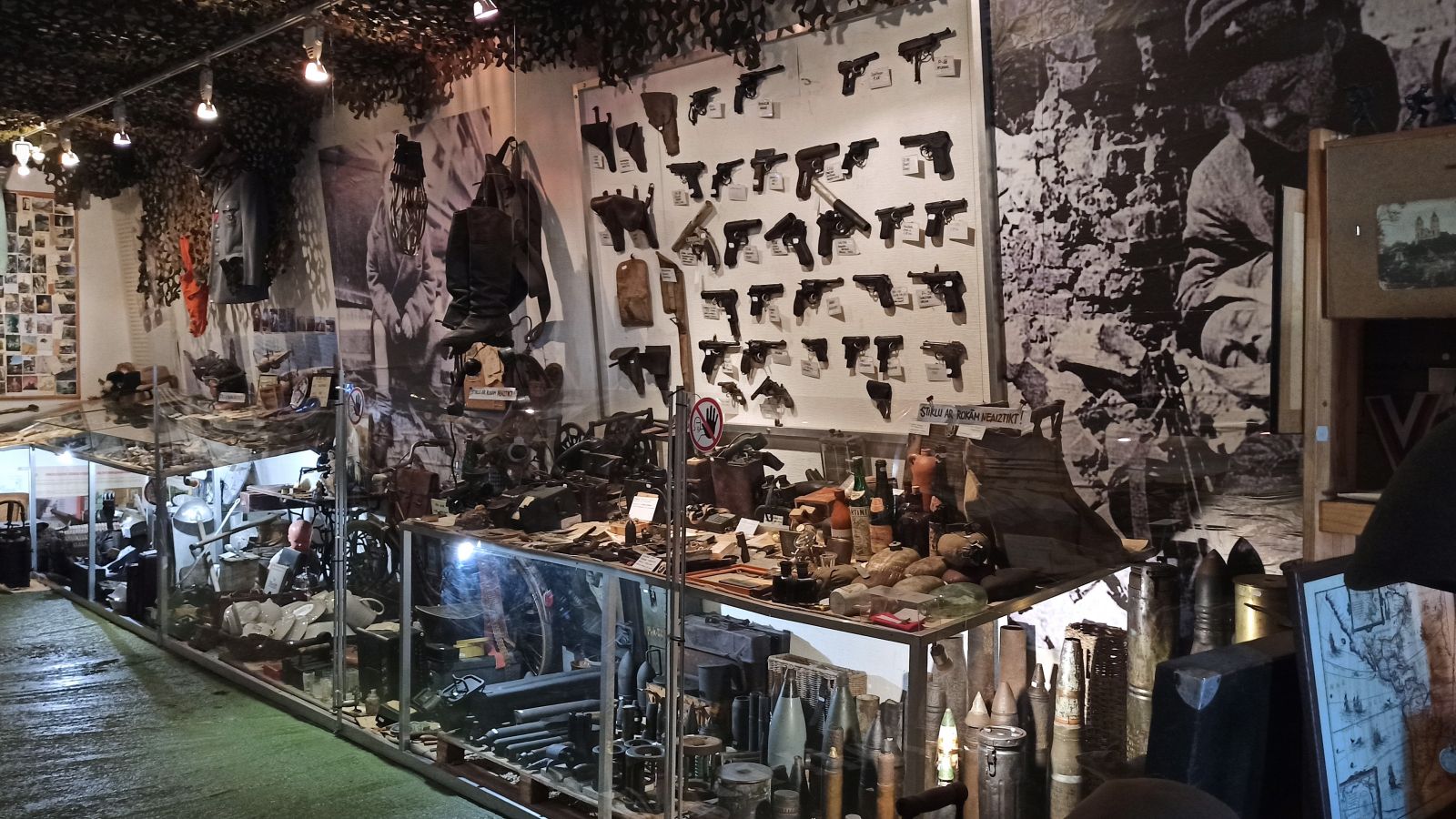 Te aplūkojami šaujamieroči, formastērpi, karavīru sadzīves priekšmeti, dokumenti, nozīmes, kartes, fotogrāfijas, grāmatas un citi priekšmetu veidi. Priekšmetu ir tik daudz, ka to uzskaite pagaidām veikta aptuveni — ir priekšmeti, kam piešķirts individuāls numurs, bet ir tādi, piemēram, vēstules, kas apzīmēti ar kopēju numuru. Muzeja vadītājs ir zinošs un atraktīvs, par viņu cildinošas atsauksmes lasāmas viesu grāmatā.