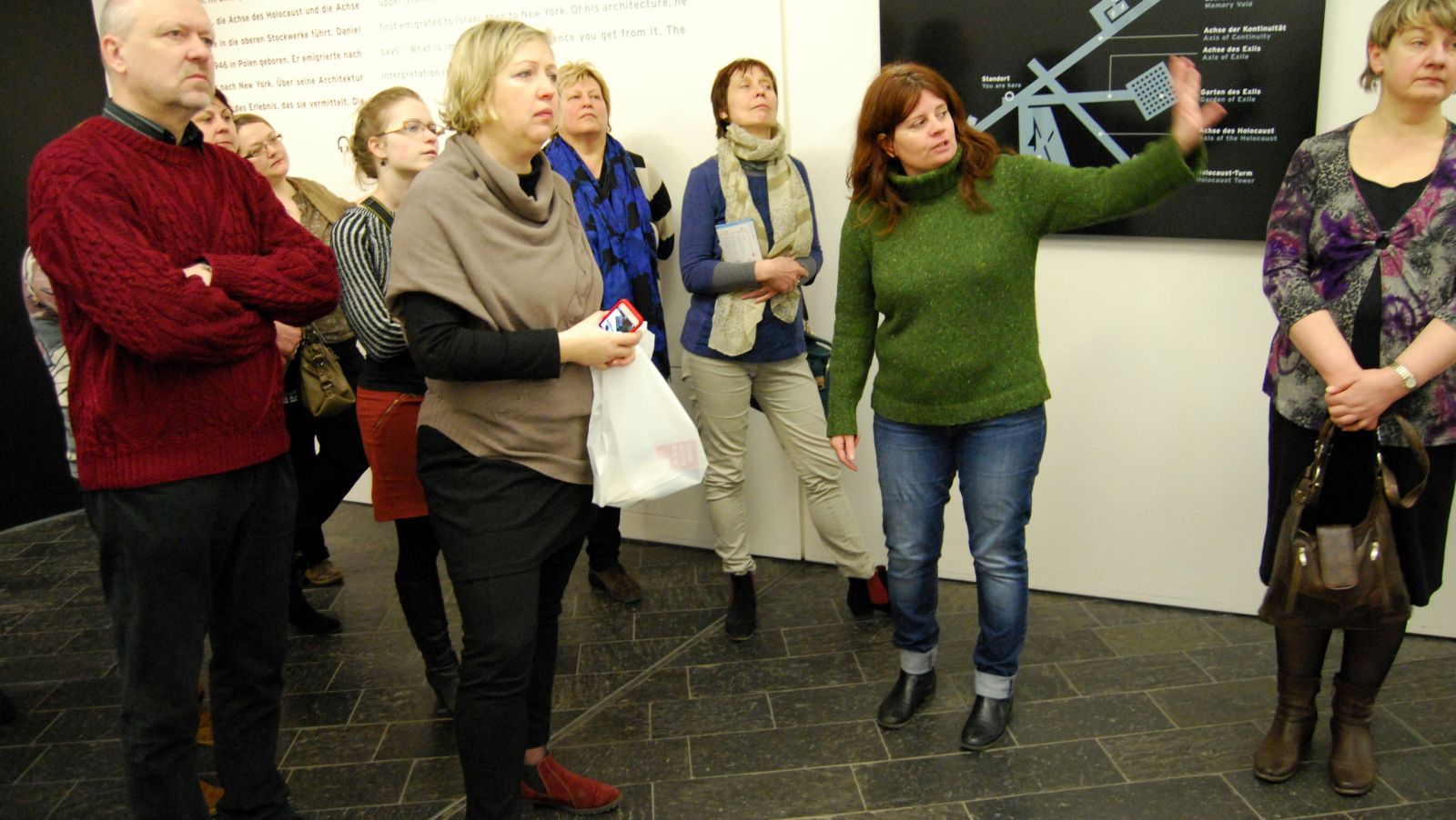 Pēdējā mācību brauciena dienā, 29. martā, apmeklējām iespaidīgo, savdabīgi projektēto Berlīnes Ebreju muzeju. Muzeja apmeklējumu vadīja Leontīne Meijere-van Menša. Viņa pastāstīja, ka ekspozīcijas izveidē savulaik iesaistīti savstarpēji nesaistīti speciālisti no dažādām valstīm, un arī viņai, tikko augstskolu beigušai, nepieredzējušai iesācējai, laimējies iekļūt radošajā grupā, kas deva labu pamatu turpmākajai karjerai.