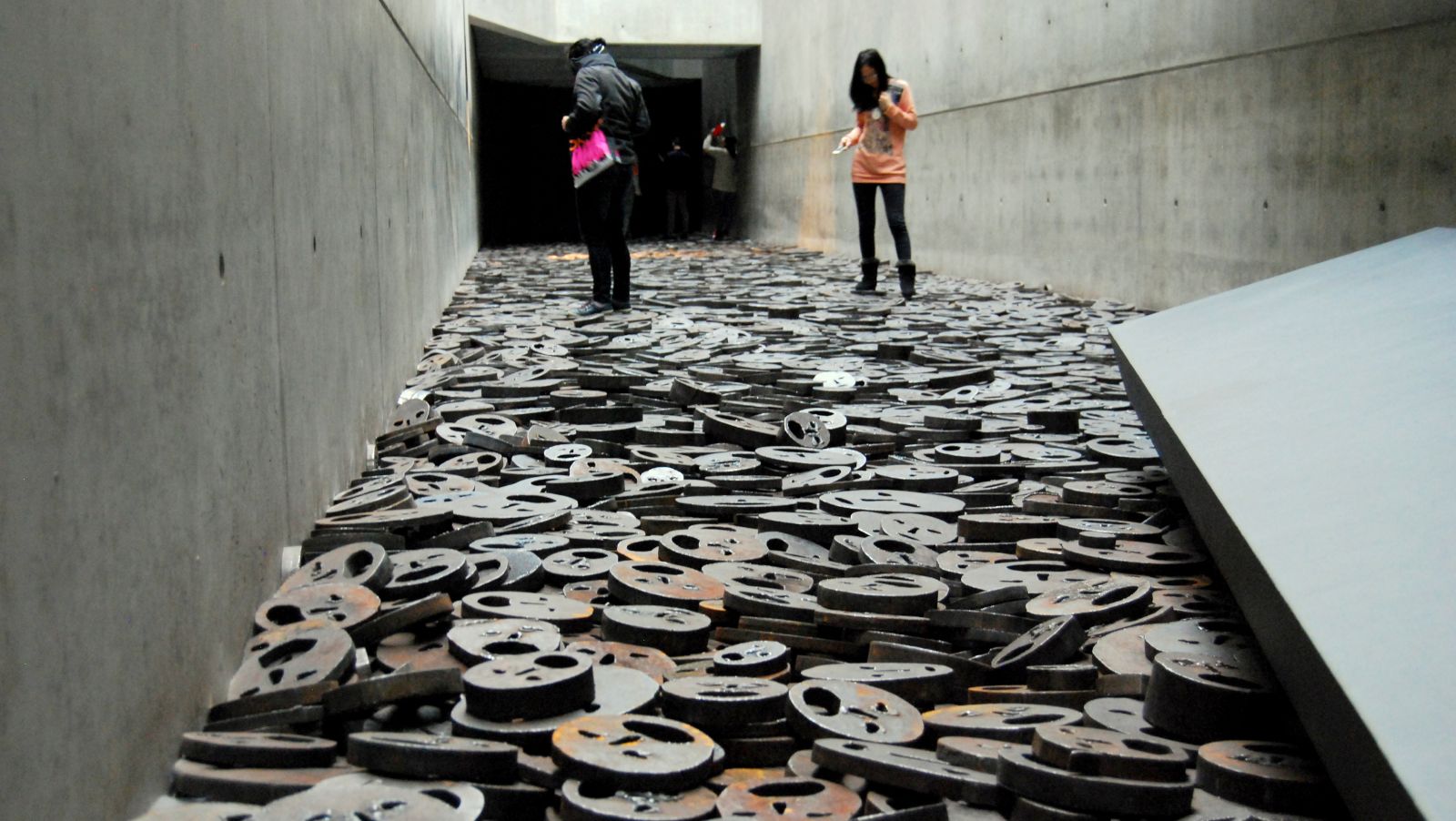 Sarežģītāk ir ar telpas komponentiem. Ieejot muzejā, nedaudz mulsina ceļš līdz ekspozīcijai, jo 1) jāiziet cauri pārbaudei, 2) garderobē jānoliek apģērbs un somas (lai gan muzeja telpās nav īpaši silts un apskates maršrutā ir iespēja iziet arī ārpus telpām). Visas telpas ir pelēkos, betona krāsas toņos. Grīdas ir slīpas. Sajūta, it kā kāptu kalnā. Dažās vietās grīda rada nestabilitātes sajūtu. Griesti ir augsti, dažās vietās pat ļoti augsti, ar atvērumu, pa kuru ieplūst gaiss un neliels gaismas kūlis. Logu ir samērā maz. Arī pēc izmēra tie ir mazi, tādējādi nodrošinot telpās tumsu. Dažās ekspozīcijās uzsvars likts uz atsevišķiem eksponātiem, atsevišķas telpas ir pilnīgi tukšas ar augstiem griestiem un tikko samanāmu apgaismojumu, savukārt citas telpas ir pieblīvētas ar eksponātiem. Telpu akustika ir atšķirīga, ar nolūku nodrošināt iecerēto efektu. Ieejot muzejā, sākumā šķiet, ka telpas ir pietiekami siltas, taču pirmajā stāvā ir visai vēss, jo pa atvērumiem būvkonstrukcijās ieplūst āra gaiss. Eksponātu saglabāšanas normas ir ievērotas. Telpas ir tīras, visās valda kārtība. Viscaur izvietotas videonovērošanas kameras, tāpēc eksponātu uzraugi nav īpaši manāmi. Apsardzes un informācijas personāls koncentrējas muzeja ieejas zonā, kur notiek kontrolēta caurlaide, un garderobē. Savukārt ekspozīcijā manāmi tikai atsevišķi apsardzes darbinieki. Sastaptie apmeklētāji bija neuzbāzīgi, klusi un pieklājīgi. Tas izpaudās vietās, kur nācās gaidīt savu kārtu eksponātu apskatei. Ugunsdrošības ierīču vietas ir atzīmētas arī apmeklētājam saredzamās vietās.