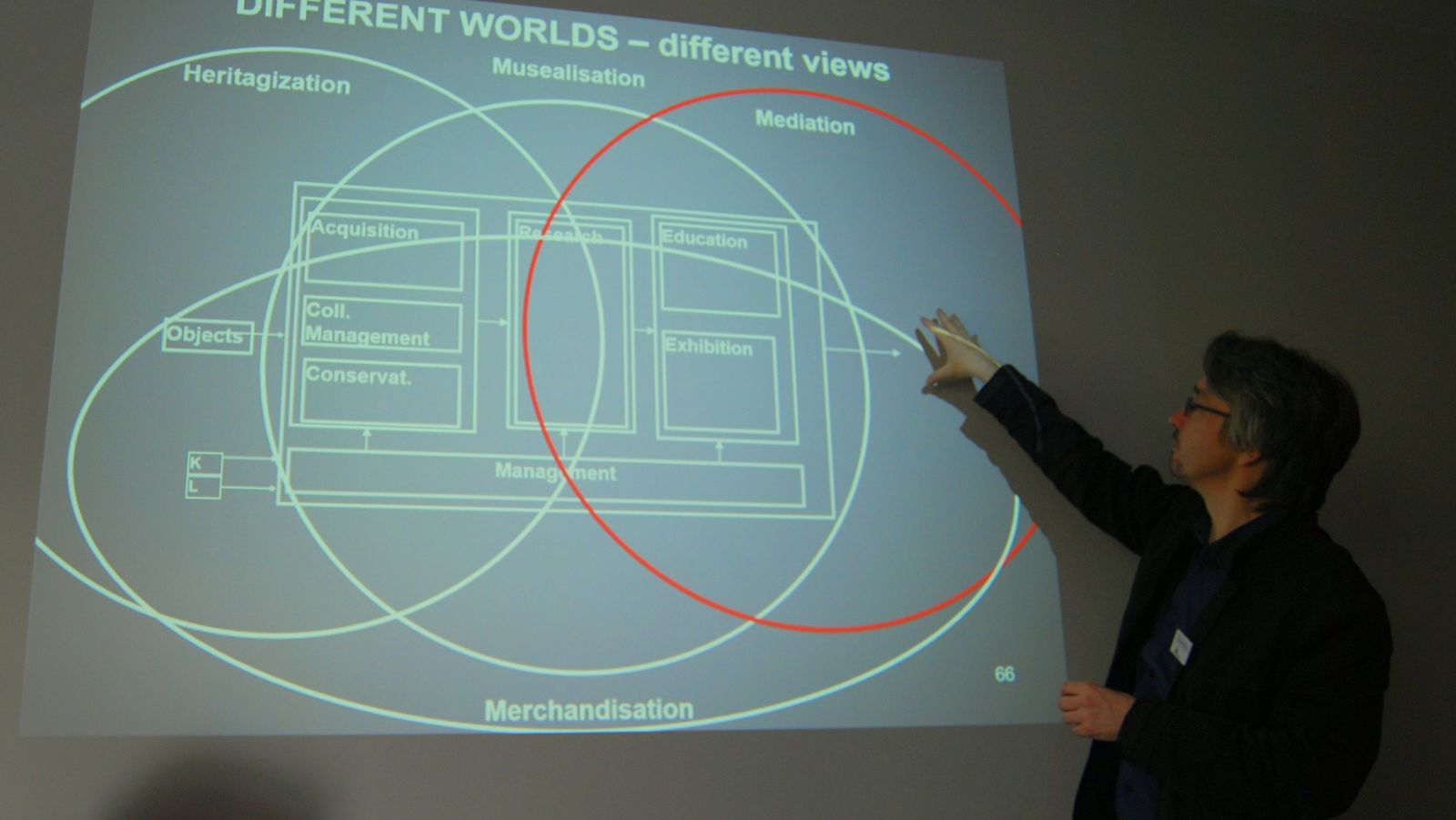 Grupu diskusijai sekoja Fransuā Meresa lekcija, kurā viņš iepazīstināja ar savu muzeju un muzeoloģijas attīstības skatījumu aptuveni pēdējo 100 gadu laikā. Ir jāsaprot un jāpieņem, ka mūsdienās vienlaikus un līdzās pastāv gan dažādi priekšstati par to, kas ir muzejs, gan - ļoti dažādi muzeji. Turklāt muzeju dibinātāju domas par to, kālab jāfinansē muzeji, visbiežāk atšķiras no pašu muzeju idejām par muzeja lomu sabiedrībā. Muzeoloģijas uzdevums ir vērīgi raudzīties uz visu šo plašo priekšstatu paleti kopumā, izprast tendences un izteikt prognozes.