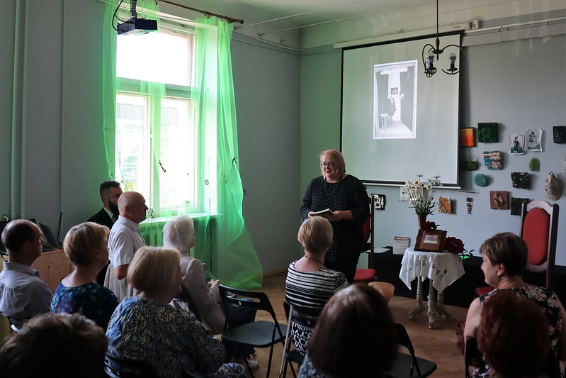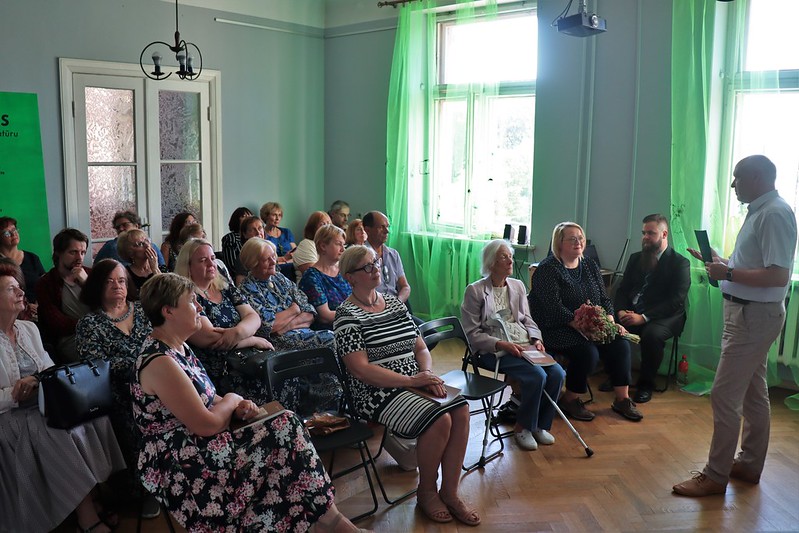 Pasākumu vada Una Sedleniece, grāmatas izdevēja – Baltijas Muzeoloģijas veicināšanas biedrības – pārstāve