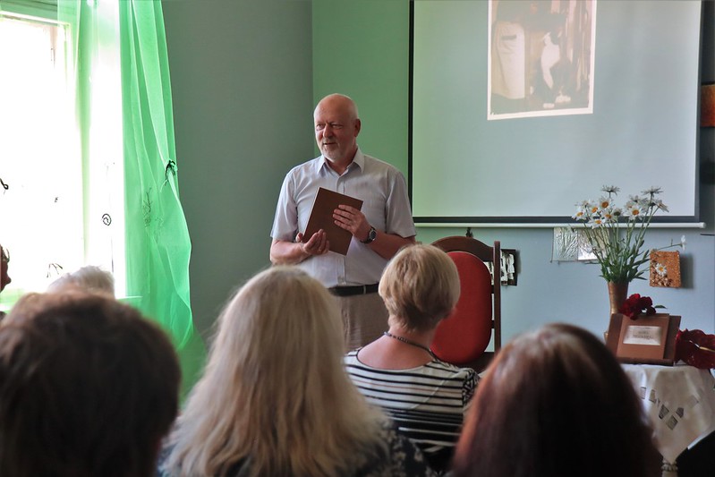 Jānis Garjāns pateicas Andrai Lazdānei, Rakstniecības un mūzikas muzeja krājuma glabātājai
