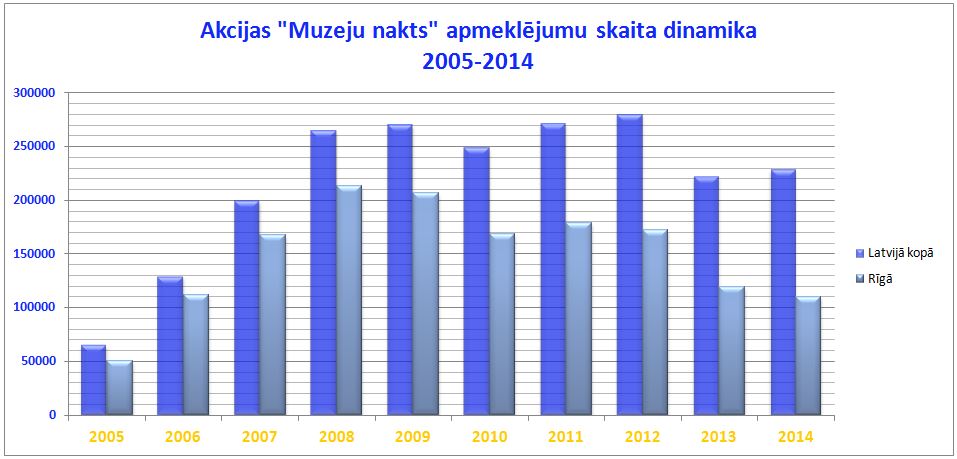 Desmit gadi ir pagājuši, kopš Latvijas muzejus ik pavasari satricina Muzeju nakts. Šai laikā akcija ir piedzīvojusi būtiskas izmaiņas. Lai saprastu izmaiņu dinamiku, vispirms der ielūkoties Muzeju nakts statistikas apkopojumos, kas aptver visu laika posmu, kurā Muzeju nakts ir notikusi.