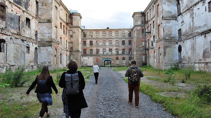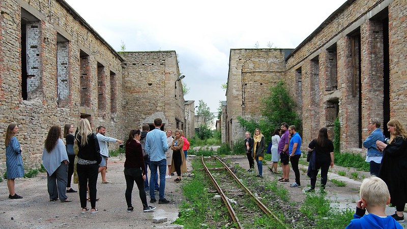 Tad seko ekskursija uz iespaidīgo, bet šobrīd tikai laikus pieteiktām ekskursantu grupām pieejamo Krēnholmas tekstila manufaktūras teritoriju, kas pārsteidz ar savu mērogu, daudzajiem milzu fabriku korpusiem, ainavām, kas paveras gan uz klinšaino Narvas upes gultni, gan uz Krievijas pusē vīdošajām kādreizējās buraudekla fabrikas ēkām. 19. gs. vidū, kad Krēnholma tika dibināta, tā bijusi lielākā tekstilrūpnīca Eiropā. Pārsteidz arī kontrasts starp Ivo Posti daudzšķautņaino vēstījumu par tekstilindustrijas attīstību, strādnieku dzīves apstākļiem, manufaktūras dzīves ikdienas plūsmām un krīzēm, par sadzīvi un sadzīvošanu tieši uz divu valstu robežas, par darba apstākļiem, iekārtojumu un noteikumiem – un šobrīd redzamo industrijas milža pamesto ķermeni, ko neatlaidīgi apgūst daba. Tagad teritorija ir investoru rīcībā un gaida izdevīgu brīdi, lai attīstītos kā izklaides un azartspēļu centrs, taču kādā korpusā jau uzsākti renovācijas darbi tekstilrūpniecības vēsturei veltītas ekspozīcijas telpas izveidei, kas gan nupat ir apstājušies Covid-19 pandēmijas dēļ.