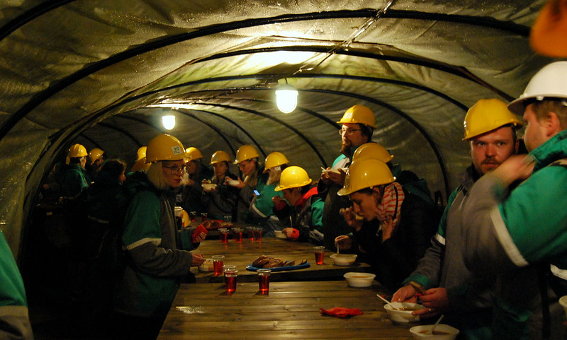 Degakmens pārstrādes cehā, no kura logiem paveras skats uz apkārtnes rūpniecisko ainavu, vairākos stāvos iekārtota ekspozīcija par darba procesu un labākajiem darbiniekiem. Ekspozīcija iekārtota "minimālisma garā", tās izteiksmes līdzekļi ir skopi. Jo šīs vietas “sāls” ir ainava, raktuvju virszemes ēkas un, protams, pašas raktuves, kurās silti ieģērbtie uz ar drošības ķiverēm apgādātie apmeklētāji tiek ievesti strādnieku vilcieniņā. Raktuvēs saglabāti un tiek darbināti dažādi vēsturiskie mehānismi, uzskatāmi parādot degakmens ieguves procesu. Jāatzīst, ka šīs mācību ekskursijas spilgtākie iespaidi saistās ar gidu Juriju, kurš visu mūžu ir strādājis raktuvēs un demonstrēja ne tikai savas prasmes mehānismu darbināšanā, bet arī vārdos neizsakāmo lepnumu ar savu darba vietu.