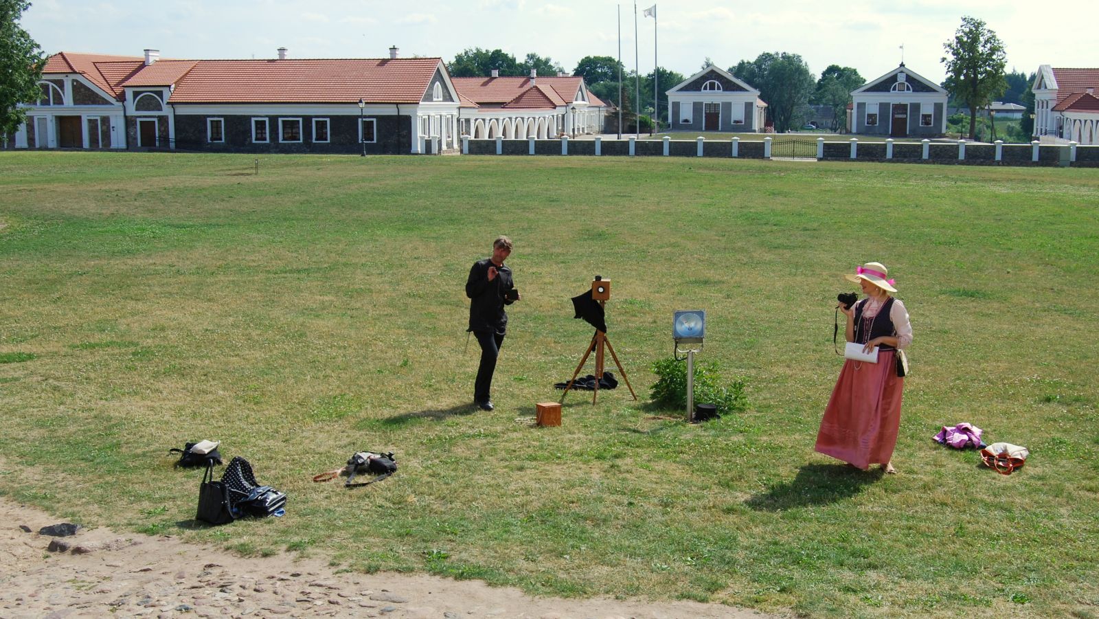 Pakruojes muižā ir ieradies fotogrāfs ar senlaiku fotokameru.