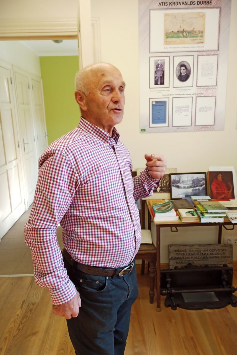 Durbes vēstures nama vadītājs iepazīstina ar ekspozīciju. Foto: A.Jirgensone